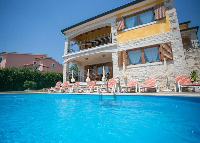 Пляжная Villa Nevena Porec с личным бассейном располагается на пляже части Пореча, всего в 6 км от Романского дома. В этой 10-комнатной вилле есть терраса c бассейном.